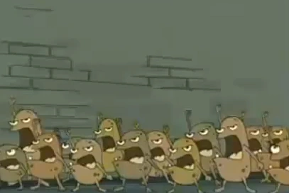 - Na dublagem brasileira, nenhuma das falas das batatas mutantes falando foram dubladas.