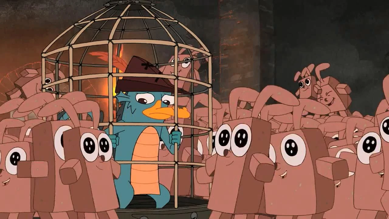 Perry o Dragãorinco preso e cercado pelos coelhinhos de carne enlatada