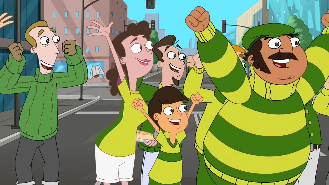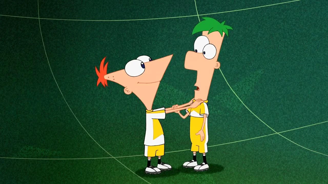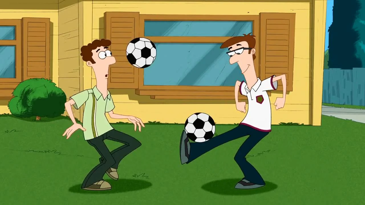 Ferb: É que... Phineas: Na verdade, não tem ninguém que goste mais de futebol do que meu irmão Ferb. Ele nos ensinou a jogar, e modestia parte, a gente joga muito bem. Mas o Ferb é o nosso craque. |