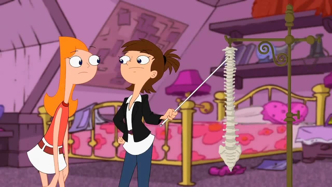 - Quando Eliza está explicando a Candace o que "anglófilos" significa, o final de seu braço esquerdo está faltando.